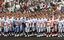 第106回全国高校野球選手権大会の開会式で、整列する各校の選手ら=2024年8月7日、甲子園