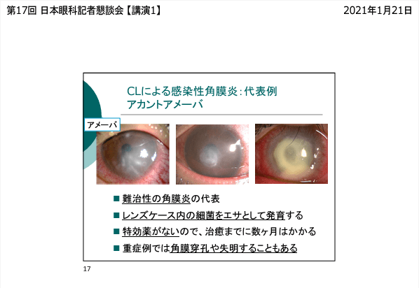 CL(コンタクトレンズ)で繁殖したアカントアメーバによって白く濁った瞳。第17回日本眼科記者懇談会【講演1】資料より