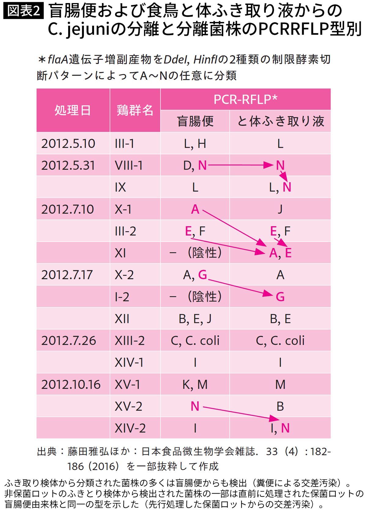 カンピロバクターの発生件数と患者数の推移は2012年の生食用牛レバー提供禁止とCOVID-19の流行により影響を受けたと考えられる。『