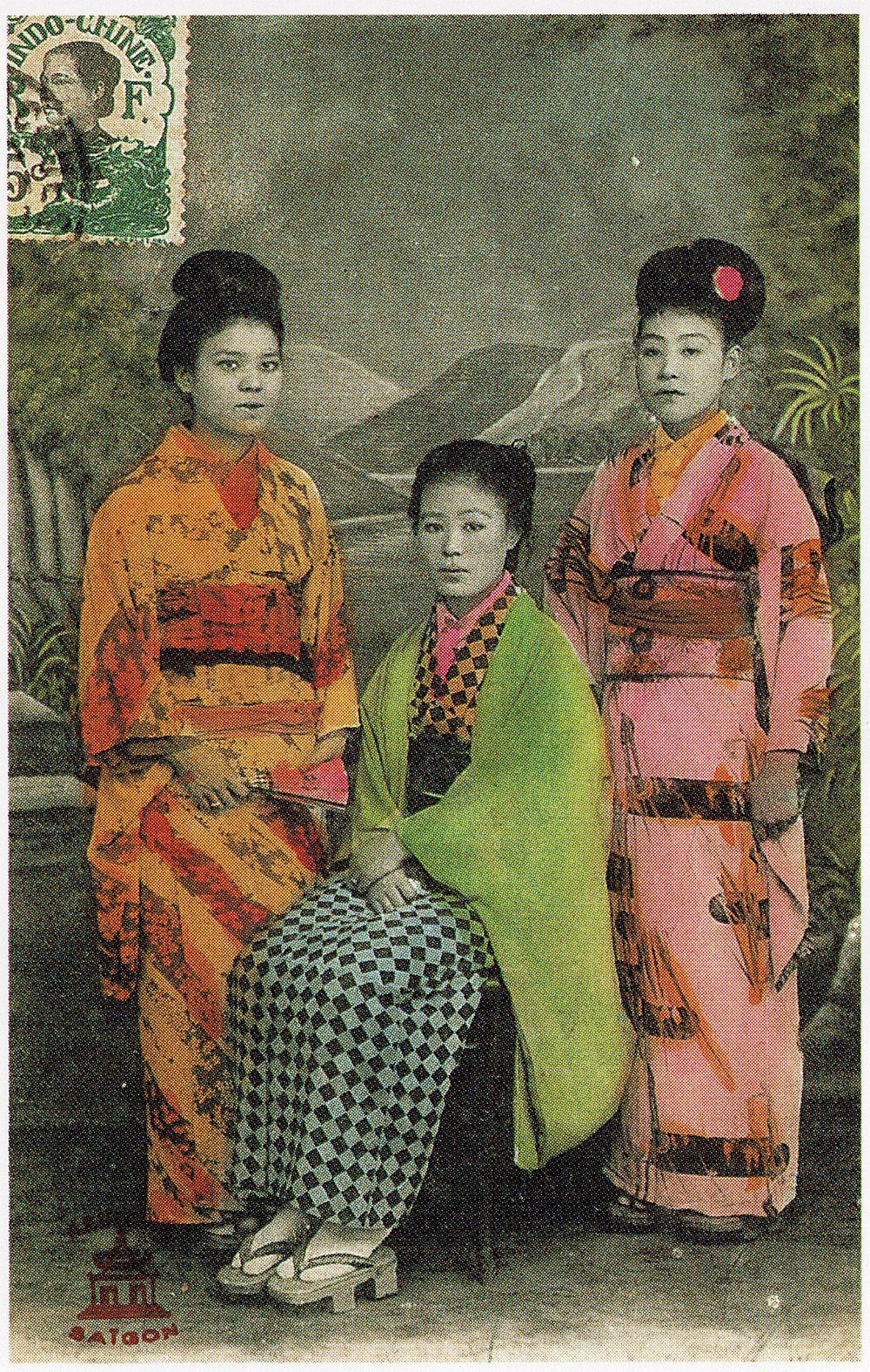 サイゴン在住のからゆきさん(1910年ごろのポストカード、カラーは着色)(写真=生活情報センター『100年前の日本』より/D-Japan-oldphoto/