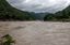 脇川の漁村を行く羽越本線の貨物列車(2015年02月13日、新潟県村上市)
