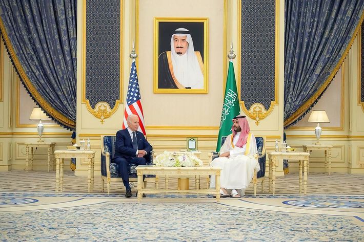 バイデン大統領を迎えるサウジアラビアのムハンマド皇太子=2022年7月15日