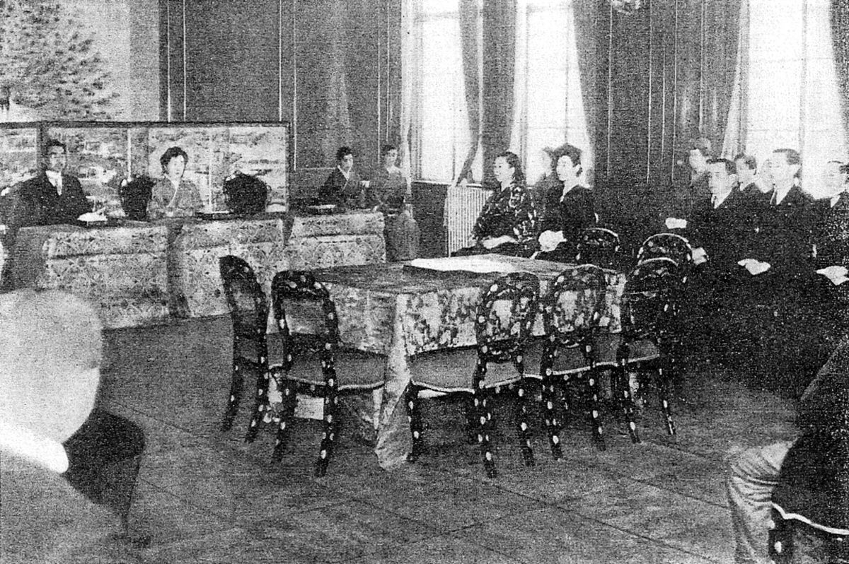 1950年頃の、宮中歌会始の様子(写真=1951年12月8日発行 櫻菊会「皇室のお寫眞」/PD-Japan-oldphoto/