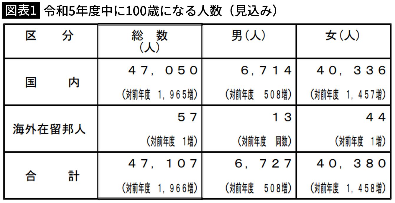 百歳高齢者表彰の対象者は47,107人