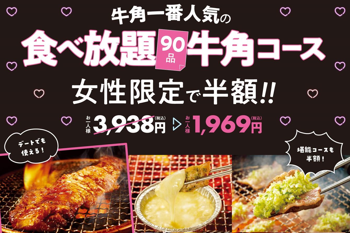 「女性半額」をうたう牛角のキャンペーン/