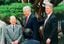 クリントン米大統領と共に写真撮影に向かうエリツィン、ロシア大統領。左は宮沢首相=1993年7月9日、東京、元赤坂の迎賓館(代表撮影)「東京サミット」