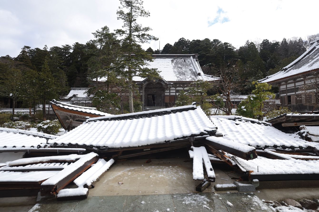 地震で被害を受けた総持寺祖院=2024年1月14日、石川県輪島市門前町