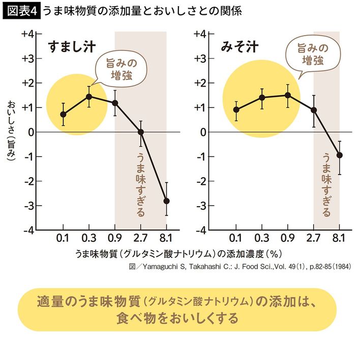 うま味物質の入れすぎで“おいしさ”が急減 「うま味物質(グルタミン酸ナトリウム)の添加量とおいしさ(旨み)との関係」
