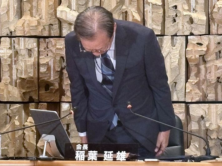 中国語ニュース放送問題について謝罪するNHKの稲葉延雄会長=2024年09月10日午後、東京都渋谷区