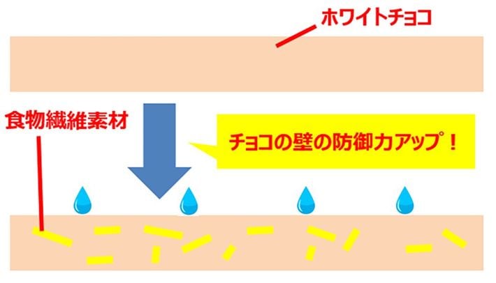 ホワイトチョココーティングに食物繊維原料を混ぜることで吸湿耐性がアップした