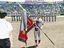 優勝旗を受け取った京都国際の藤本主将=2024年8月23日、甲子園球場(代表撮影)