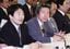 IT戦略本部会合の小泉純一郎首相(中央)、竹中平蔵経済財政相兼IT担当相(左)。首相官邸、2001年5月31日