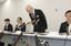 記者会見で謝罪する鹿児島県警の野川明輝本部長(右から2人目)=2024年6月21日、鹿児島市