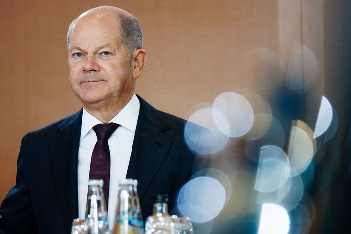 首相官邸で開かれた閣議に出席するドイツのオラフ・ショルツ首相=2024年9月25日、ベルリン