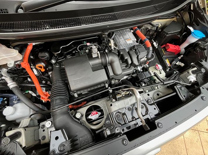 新型「フリード」のパワーユニットは、直4エンジンに最高出力123PSのモーターを組み合わせた2モーターハイブリッドシステム「e:HEV」(写真)と、1.5リッター直4ガソリンエンジンの2種類から選択できる。