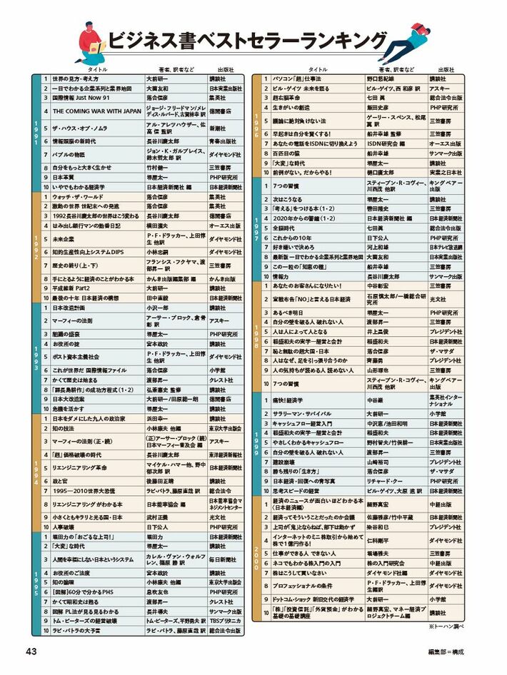 《過去30年ランキング》日本人が熱狂したビジネス書…1991年から2020年まで30年分のランキングを一挙公開