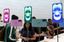 2024年9月9日、アップル本社で発表会を終えた新型iPhone 16の展示機。