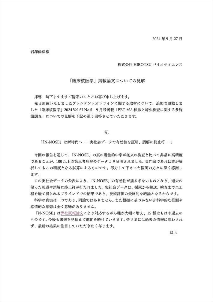 「線虫がん検査」の全国調査をまとめた論文(臨床核医学9月号)