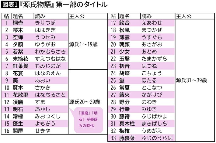 『源氏物語』第二部、第三部のタイトル(編集部作成)