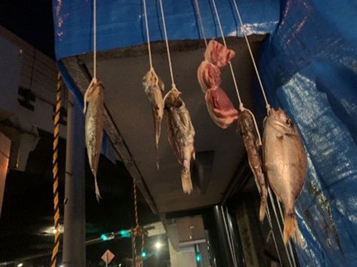 ビルの出入り口に吊るされていた肉や魚からは、異様な腐敗臭が漂っていた