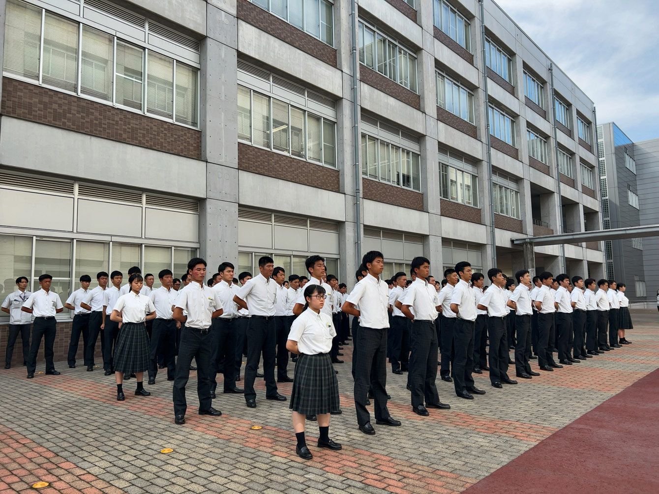 トヨタ工業学園で朝礼に臨む生徒たち。元気いっぱいの挨拶をしてから1日が始まる