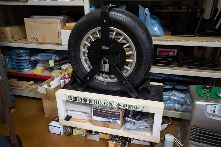 これまで3000個以上販売されてきた「タイヤガード」。盗難防御率は99.6%という