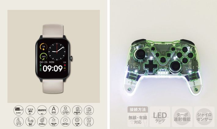 人気のデバイスバンド(2023年発売モデル)とワイヤレスコントローラー(ネット限定)。前者の商品はすでに完売。