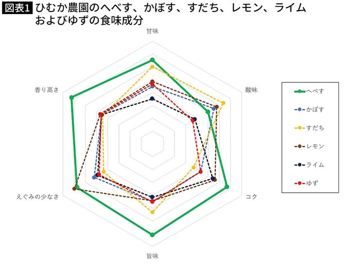 ひむか農園のへべす、かぼす、すだち、レモン、ライムおよびゆずの食味成分