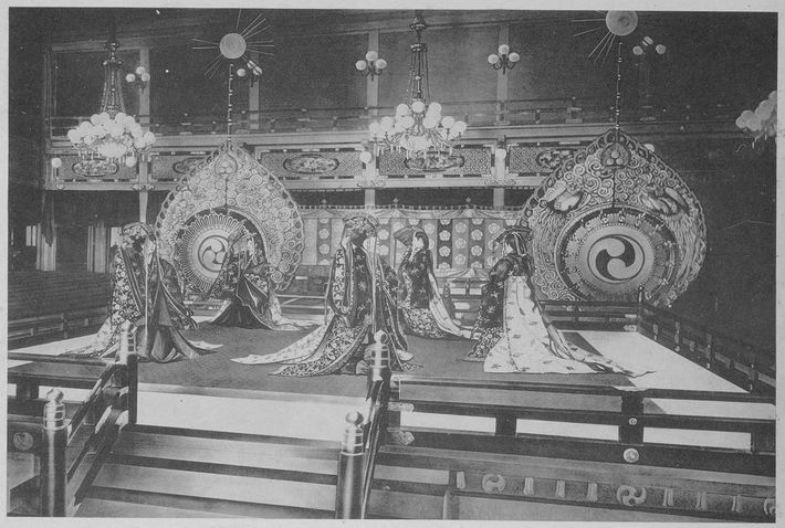 『御大礼記念写真帖』より大正天皇即位時の「五節舞」、市田オフセツト印刷合資会社東京支店編、日本電報通信社、大正4年、