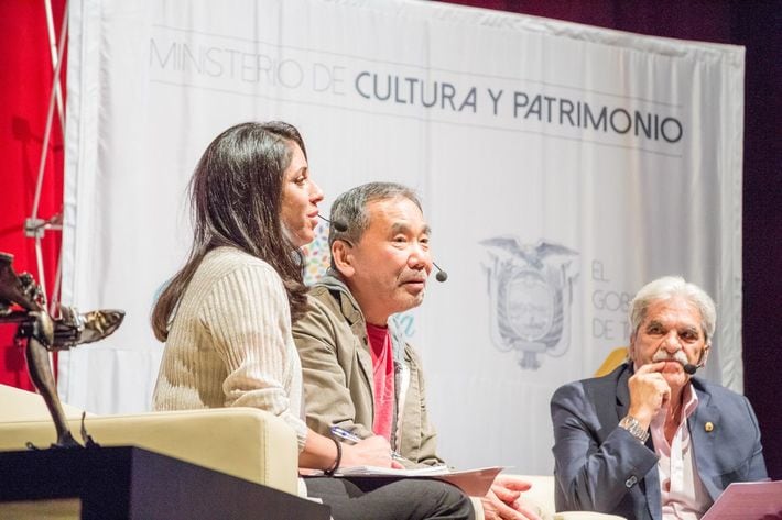 エクアドルの首都キトで公演する村上春樹さん(2018年11月8日・エクアドル)(写真=Ministerio Cultura y Patrimonio/PD-author-FlickrPDM/