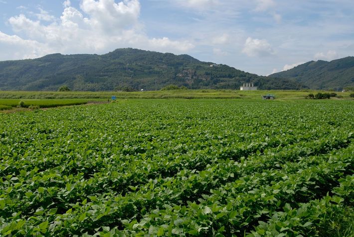 工場裏の大豆畑