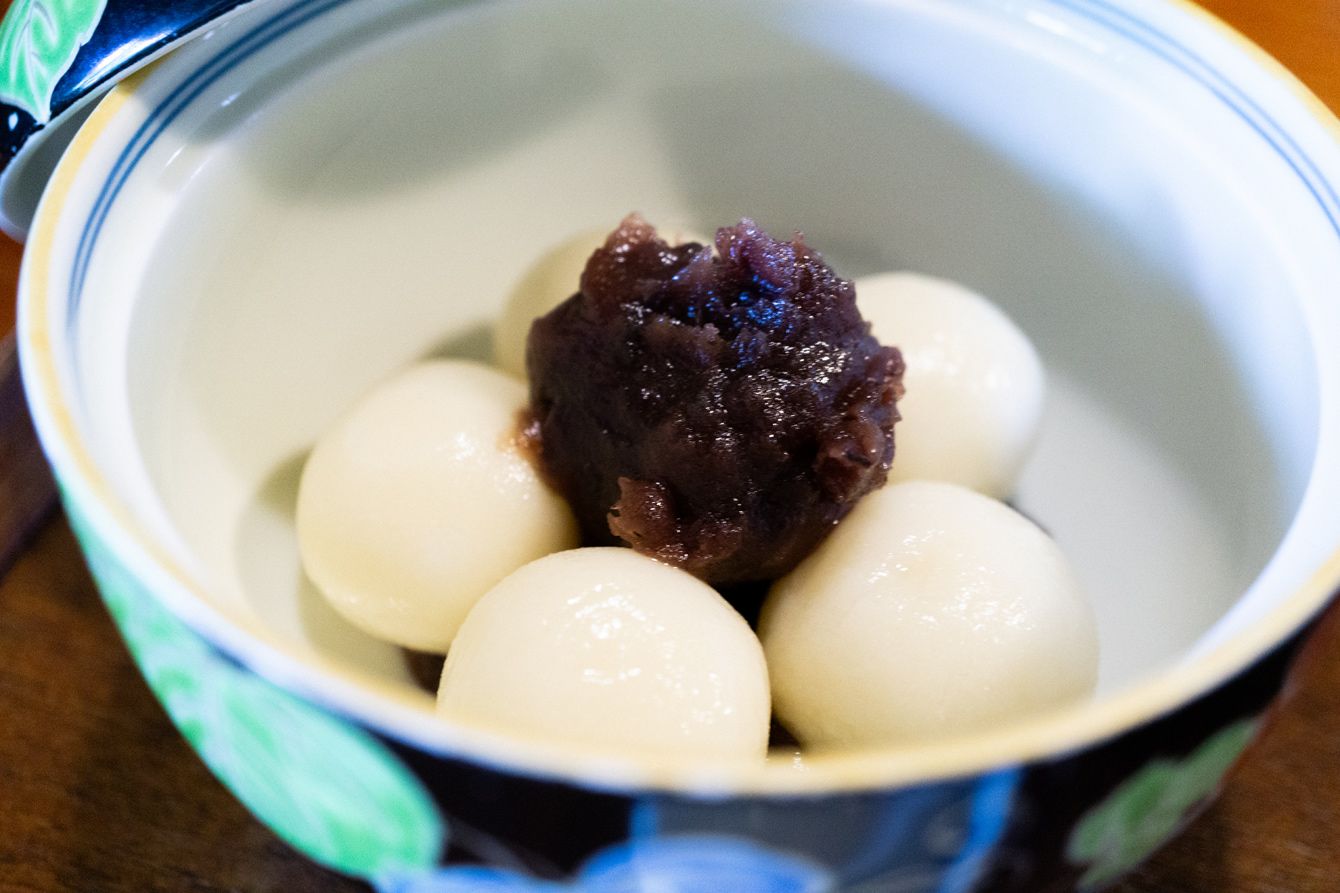 郷土食「ごどうふ」を使ったパフェ。「ごどうふ」の土台に、豆乳ソフトクリームと豆腐白玉が載っている