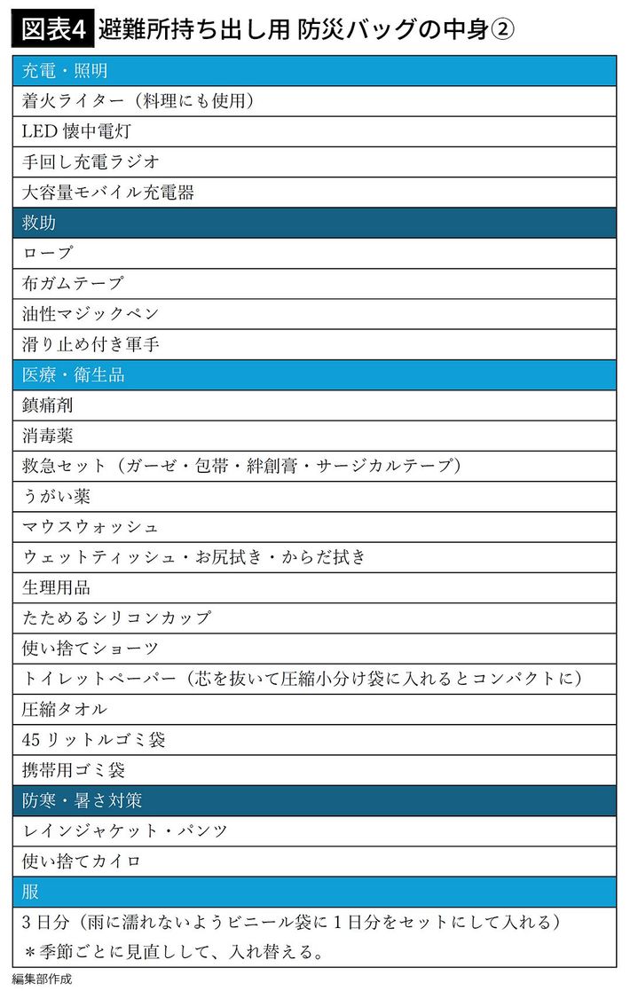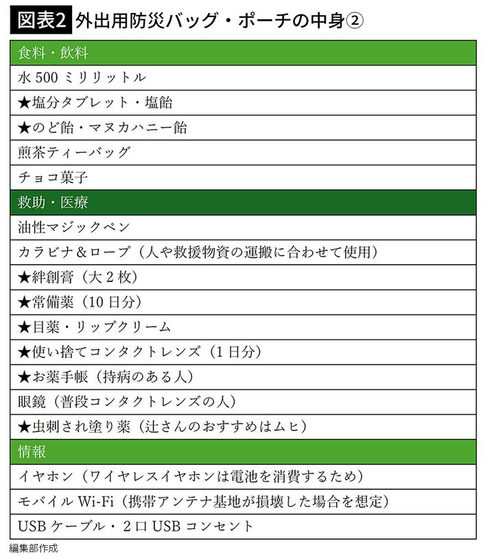 画像4:辻さんが準備している持ち出し用防災バッグの中身[出所=『