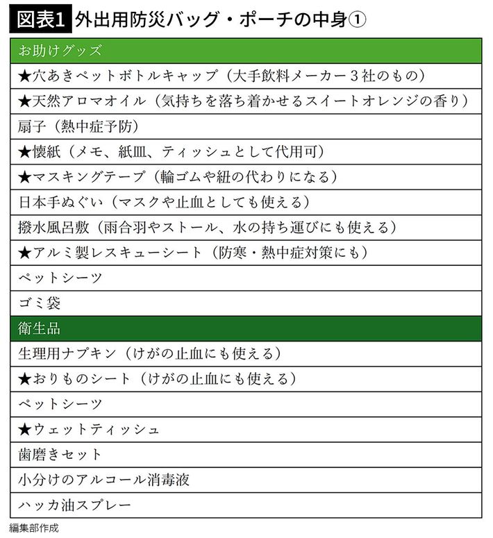 画像1:辻さんが持ち歩いている防災バッグの中身[出所=『