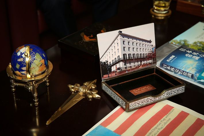 顧問室の机には、外交官時代の各国からの贈り物が並べられていた