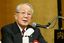 2011年7月20日、内外情勢調査会で講演する日本航空会長(当時)の稲盛和夫氏、東京・港区のホテル