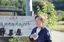 施設の前で、スタッフとともに。ここには常に笑顔があふれている。