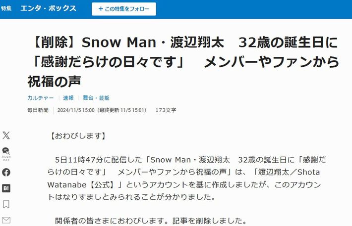 なりすましアカウントを見抜けなかったことを認め、関係者に謝罪した。問題が指摘された記事がすでに削除されている(