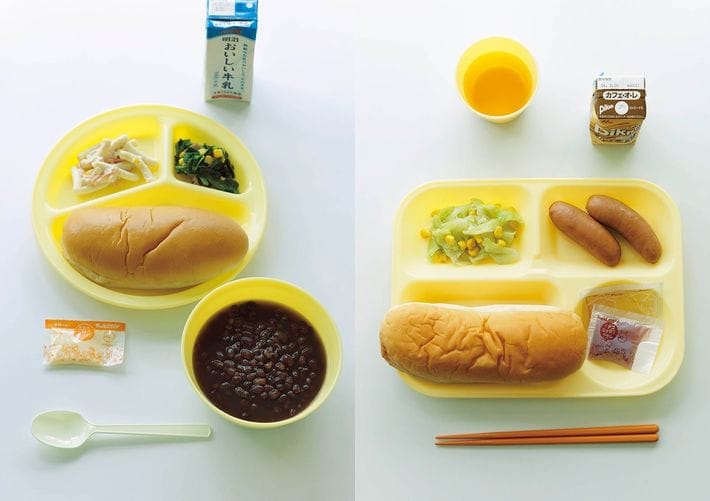 コッペパンを主食としたメニューが出ることも。甘く似た小豆の“ぜんざい”は人気メニューの一つ(左)、ソーセージはパンに挟んでホットドッグ風にも(右)。(写真=名和真紀子 料理=田内しょうこ)