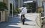 スマホ片手に逆走しようとしているウーバー配達員の自転車