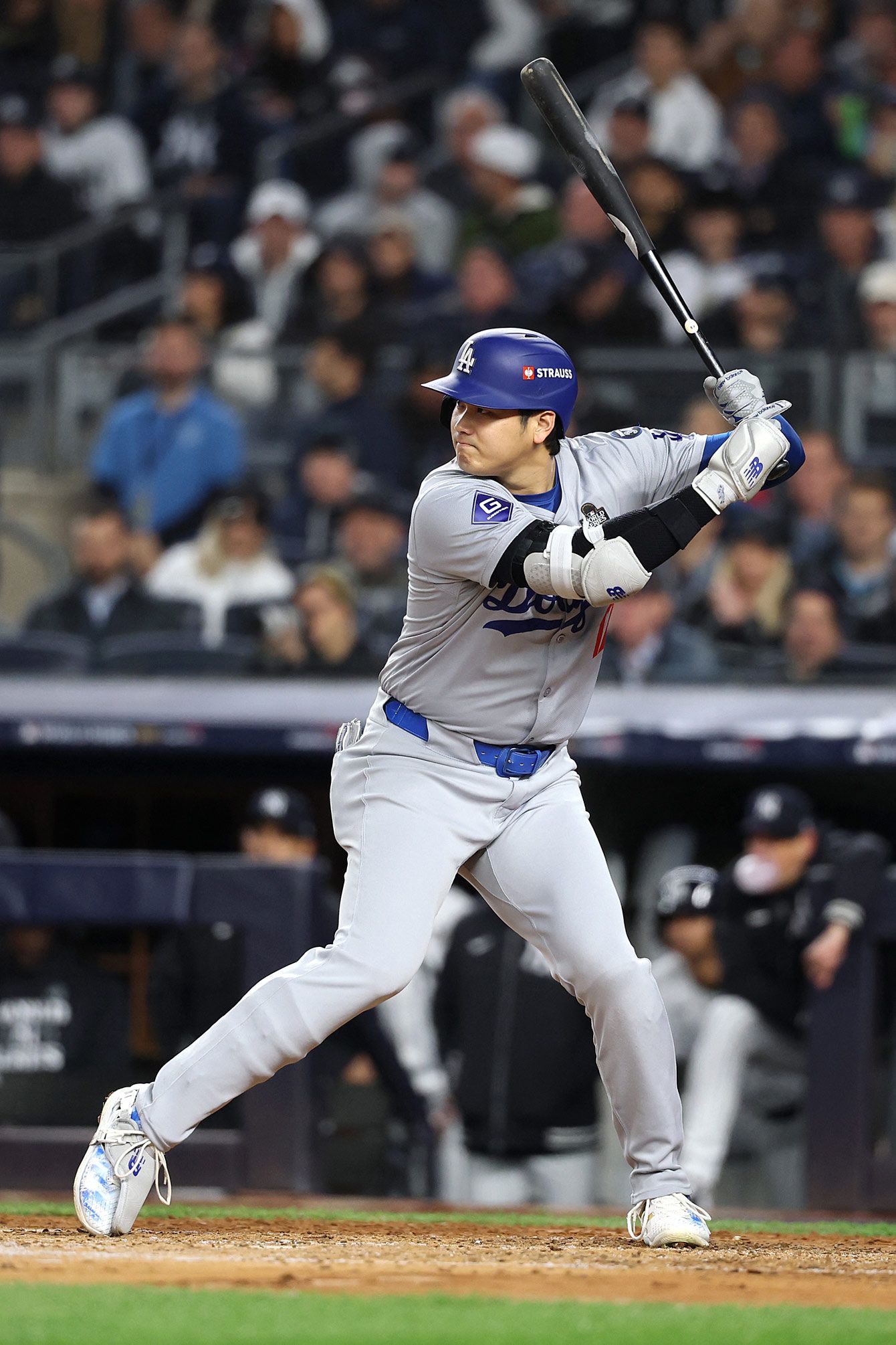 2024年10月28日、ニューヨーク市ブロンクス区のヤンキースタジアムで行われた2024年ワールドシリーズ第3戦、ニューヨーク・ヤンキース戦の4回、打席に立つロサンゼルス・ドジャースの大谷翔平#17。