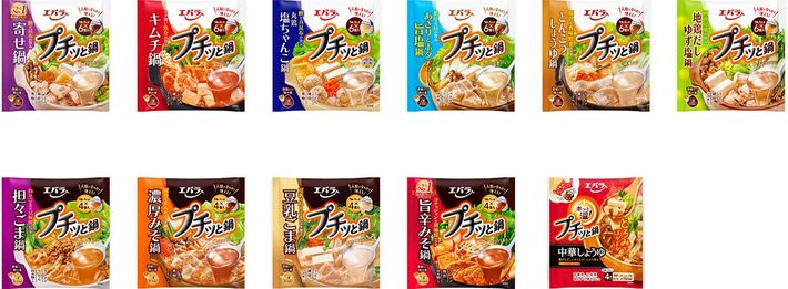 「プチッと鍋」のラインナップ(画像=エバラ食品工業