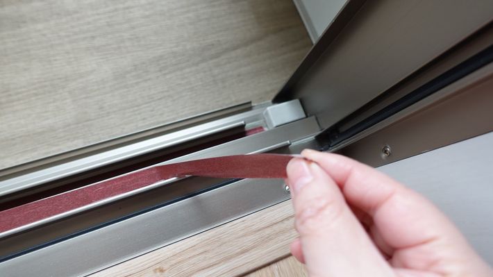 窓のサッシの溝にマスキングテープを貼り、汚れたら交換する