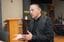 教会で行っている自立支援について語る進藤牧師。左手の小指は、第一関節から先がない