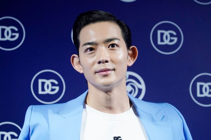 TVアニメ「呪術廻戦」とコラボレーションしたドルチェ&ガッバーナのポップアップストアに来場した俳優の竜星涼さん(=2022年4月21日、東京都渋谷区)