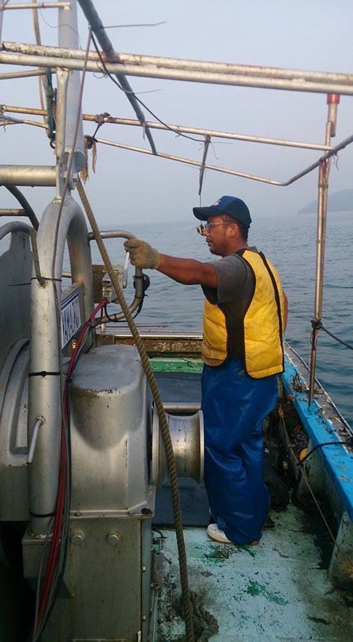 船上の邦彦さん。漁師の娘・美保さんとの出会いから漁師の世界へ飛び込むことに