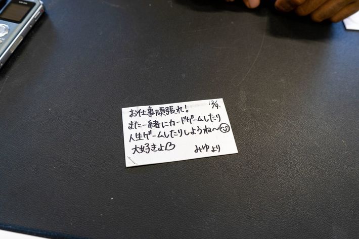 邦彦さんの名刺入れには中3の長女からのメッセージカード