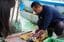 船上で魚に神経締めという下処理を施す邦彦さん