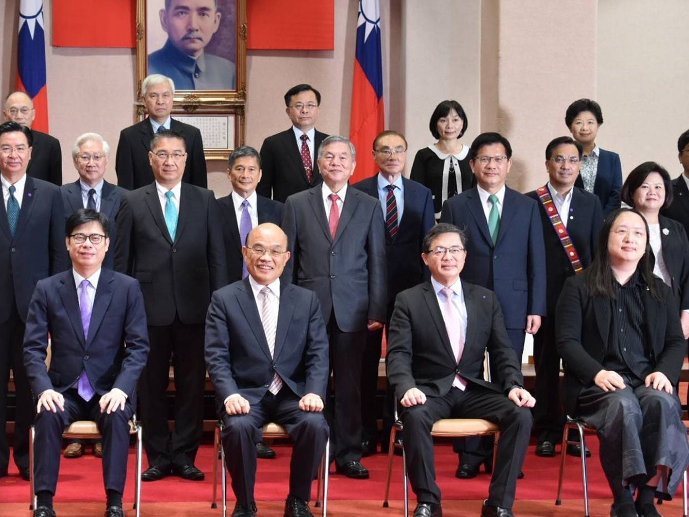 2020(令和2)年5月20日、台湾新内閣発足時のオードリー・タン氏(最前列右)。