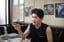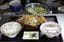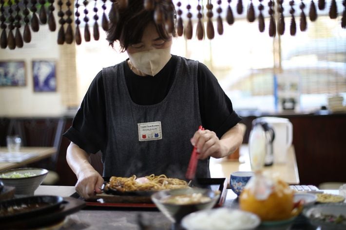 厨房でスタミナ焼きそば定食を準備している妻の愛子さん